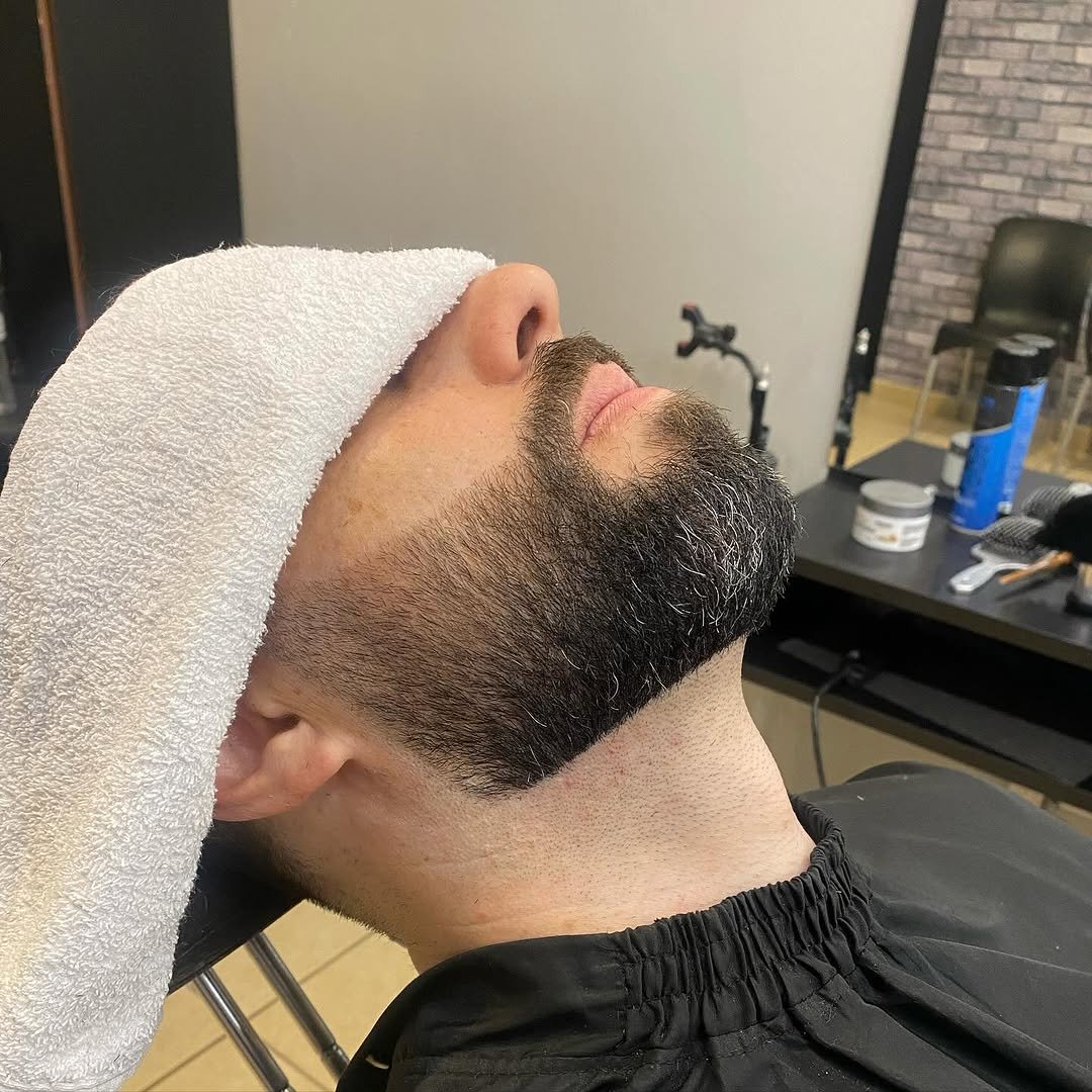 Aparação e desenho de barba com acabamento perfeito e produtos de alta qualidade.