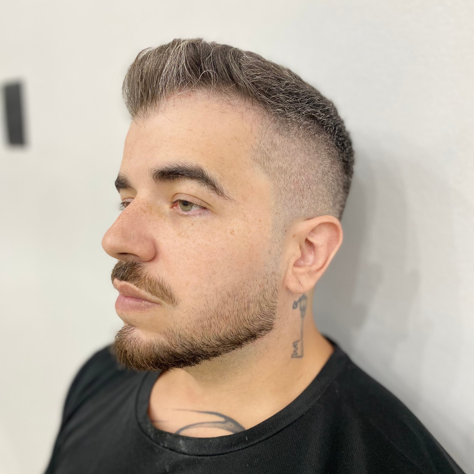 Design e alinhamento da barba com modelagem de sobrancelhas, garantindo um visual harmonioso e bem definido.